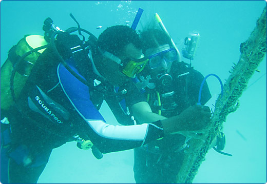 Okala kommt in den Genuss einer Tauchausbildung und kann nun auch beim Ausbau der Farm unter Wasser aktiv teilnehmen.