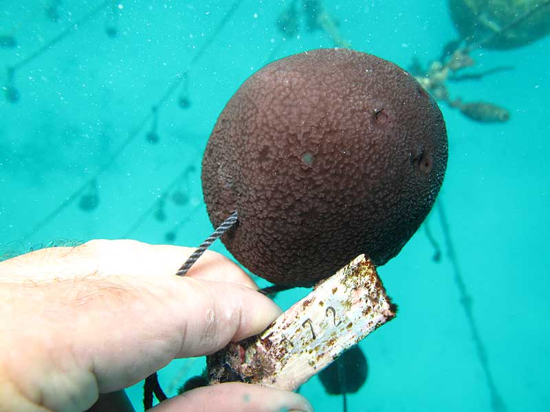 Die Resultate unseres einjährigen Tests mit den schwarzen Schwämmen (Agelas Mauritania var. oxeata) sind eindeutig. Die Schwämme wachsen unter den hier herrschenden Bedingungen zu langsam und die Mortalitätsrate ist für eine kommerzielle Produktion zu hoch. Die Schwämme benötigen mindestens zwei Jahre um eine vermarktbare Grösse zu erreichen und müssen entsprechend lange und intensiv gepflegt werden.