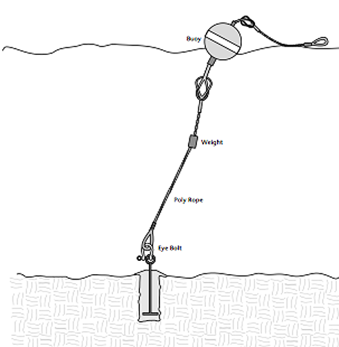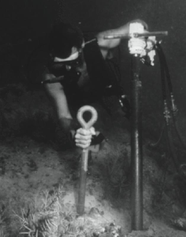 The Hallas anchoring system will be employed to fix the buoys to the seabed. Thereby, a 50cm deep hole is drilled into the rocky seabed using a hydraulic drill and a stainless steel rod is concrete-casted into the hole.